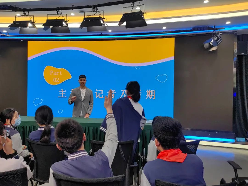 上政附中八年级于2023年4月20日下午开展了“家长进课堂”活动,在八1班程妙佳爸爸的牵头下,八1班学生徒步参观了青浦区融媒体中心。在此之前,电视台不论对学生还是对老师来说,都是个神秘的地方:播音员、主持人都是怎样工作的?电视节目是怎么制作而成的?需要经过哪些程序?……同学们带着满脑袋的疑问,在老师和家长志愿者的陪同下踏上了探寻融媒体之路。