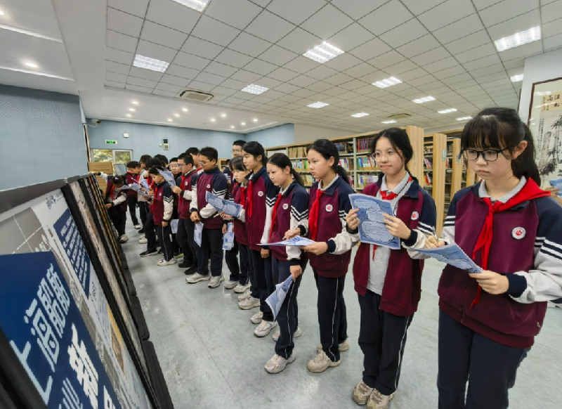 2025年10月20日,上政附中携手共建单位上海市历史博物馆(上海革命历史博物馆),将“自强崛起之路——上海船舶工业文物史料展”搬进校园,在学校图书馆打造主题公益展,为师生带来一场融合科学教育与红色教育的沉浸式学习体验。