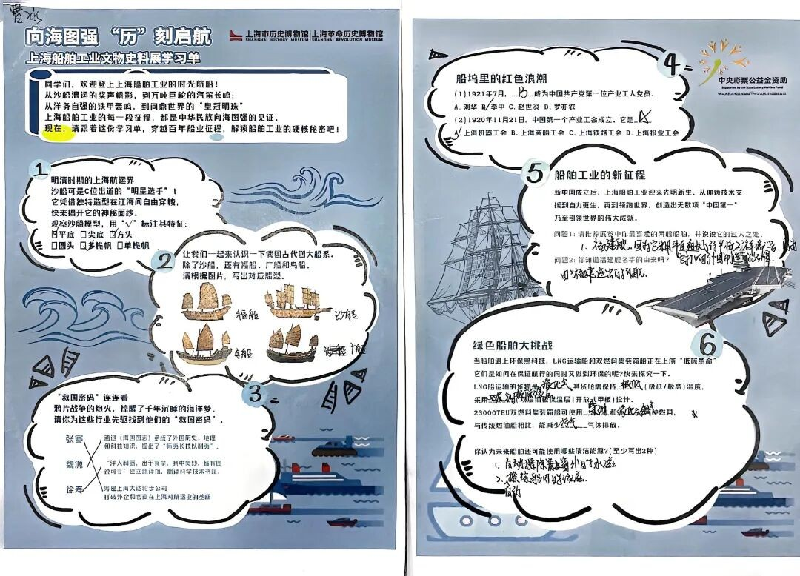 学生们手持学习单,边观看边记录,围绕“福建舰命名由来”“LNG船环保技术”等问题互动探究,在答题与思考中深化对“自力更生、科技报国”精神的理解。