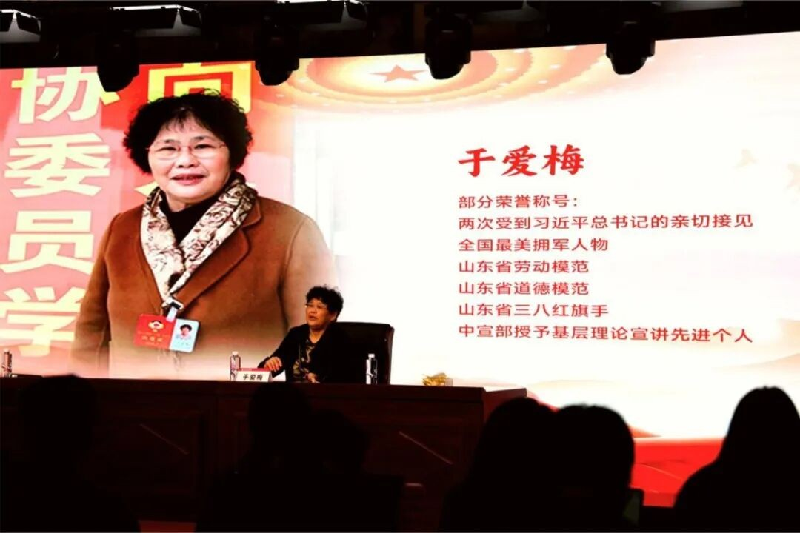 于爱梅老师作为全国最美拥军人物、山东省道德模范,曾两次受到习近平总书记亲切接见,她结合自身查阅资料、撰写讲解词,走进学校、部队宣讲的经历,生动生动还原了烽火岁月中沂蒙儿女的赤诚担当:从“沂蒙红嫂”明德英不顾自身安危“乳汁救伤员”,到祖母王换于创办“战时托儿所”抚养40多名革命后代、自己亲人却因战乱夭折,一个个鲜活的故事、一句句深情的讲述,让在场师生数次眼眶湿润,深刻体会到“水乳交融、生死与共”的沂蒙精神内核。