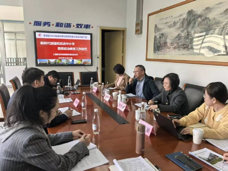 2025年11月11日,青浦区2024年度教育科学研究重大项目《新时代加强和改进中小学思想政治教育工作研究》中期论证会在上海政法学院附属青浦崧淀中学隆重召开。