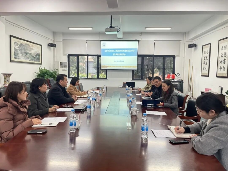 在座谈交流环节,双方围绕课题合作、师资发展、学生培养、课程共建、党建联动等核心议题展开深入探讨。上政附中提出了在国际交流能力培养、听说教学研究、校本课程开发等方面的需求;上政语言文化学院则介绍了可提供的理论支撑、师资培训、学生志愿服务、实习基地建设等资源。双方一致认为,在“依托合作办学优势,提升学生国际交流能力的案例研究”课题框架下,可实现高校理论资源与中学实践场景的精准对接。