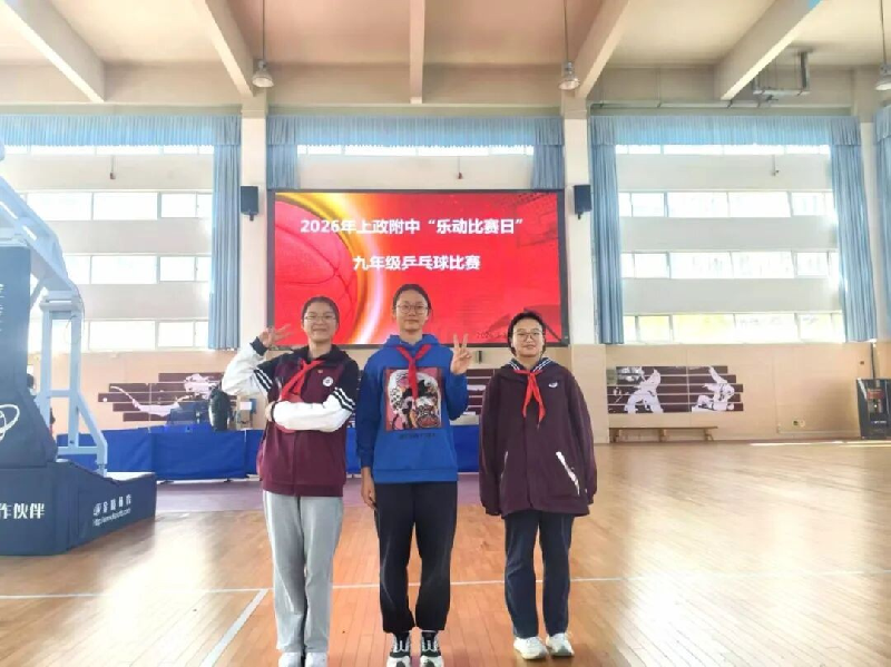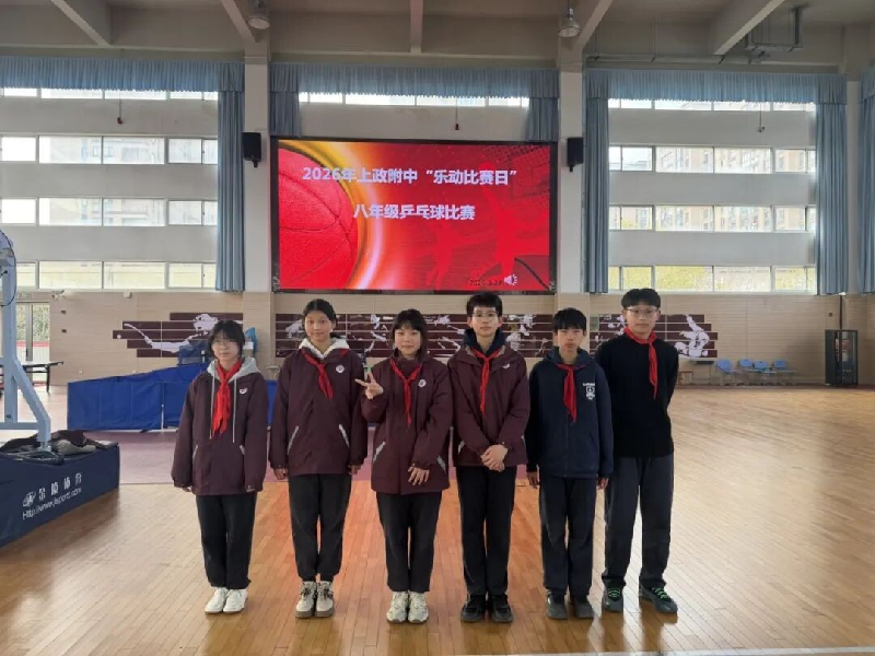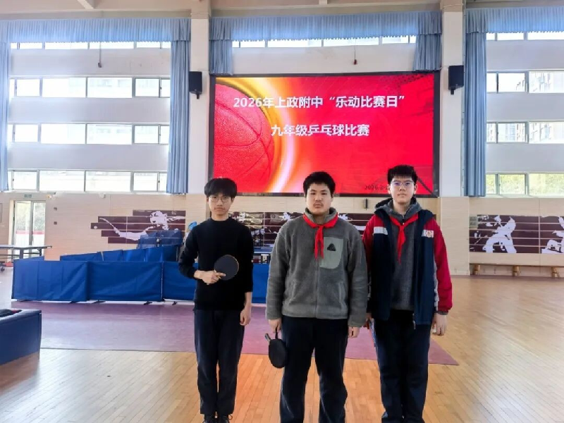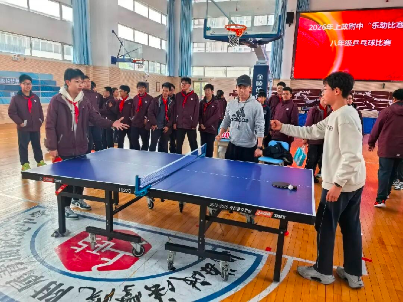 为全面贯彻我校深化新时代学校体育工作高质量发展方案,丰富校园体育文化生活,弘扬国球精神,展现上政附中学子昂扬风貌,2026年3月13 日和27 日,上政附中“乐动比赛日”八、九年级组乒乓球比赛在学校体育馆顺利举行。全校八、九年级乒乓健儿齐聚赛场,以球会友、以赛砺志,在一次次挥拍、攻防、扣杀中,绽放青春活力,诠释拼搏精神。