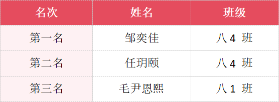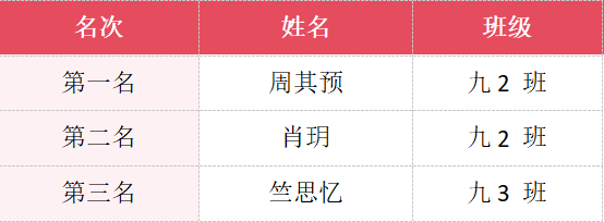 经过多轮紧张激烈的比拼,八、九年级组各项名次火热出炉: